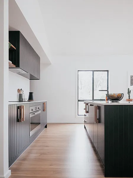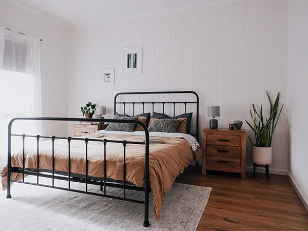 Originally Liam and Adam were thinking of designing their own home, but once the team at Wallan took the guys through the range of designs available, they fell in love with the Cascade 121. “Having a design that had almost everything we wanted really saved a lot of hassle,” Liam said. “We wanted a home with the open-plan kitchen and living at the rear of the home, three bedrooms, one bathroom a separate laundry and a walk-in-robe in the master bedroom,” Adam told us. “Once we learned we could modify the design, we knew the Cascade was perfect for us. The guys were able to modify the master suite design and eliminate the ensuite, which allowed them to turn it into a large walk-in-pantry in the kitchen. They also didn’t want a bath, and moved the separate toilet into the bathroom itself, which gave them a larger walk-in-robe in their bedroom. They added spectacular raked ceilings in the open-plan kitchen and living space, and because they’re on a twelve acre block, they had the luxury of modifying the design to make all the rooms bigger than the original design allowed for, giving them an extra metre around the entire home. “We also wanted to simplify the façade, which the Wallan team were really on board with. We didn’t want a garage at all, and we removed all the bells and whistles so the exterior didn’t look too fussy - the home really looks like it was popped down on the land,” the guys told us.